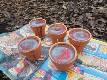 Außerdem haben die Waldhörnchen darüber gesprochen, dass es Menschen gibt, die an Weihnachten alleine sind. Deshalb hat die Gruppe einen Teil der Drahtanhänger und der Kerzen einem Seniorenkreis geschenkt.