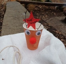 Im Dezember haben wir den Advent in den Wald geholt und uns die Wartezeit auf Weihnachten durch einen „lebendigen Adventskalender“ verkürzt. Dafür hat sich jedes Waldhörnchen aus einem Becher ein Rentier als Türchen gebastelt. Jeden Tag wurde in ein neues Türchen ein Angebot für den Tag gelegt. Gemeinsam haben wir dieses Angebot in der Gruppe durchgeführt. Beispielsweise gab es Lieder, wie „Guten Tag, ich bin der Nikolaus“, sowie Geschichten rund um das Thema Weihnachten und Advent. Zum Nikolaus-Tag gab es ein gemeinsames Nikolaus-Frühstück im Wald. Wir haben verschiedene Bücher gelesen, z.B. „Der kleine Igel und die rote Mütze“ oder „Der überraschende Weihnachtsbrief“.
