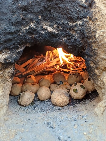 Endlich ist die Zeit gekommen, wo wir wieder Feuer im Wald machen dürfen und wir starteten damit, den Lehmofen von innen auszubrennen. Jeden Tag entfernten viele fleißige Hände immer ein bisschen mehr Sand aus dem Inneren des Ofens und entzündeten dort gemeinsam ein kleines Feuer. Schließlich war der Lehmofen komplett getrocknet und dieser konnte getestet werden. Jedes Waldhörnchen hat sich ein kleines Brötchen geformt und dieses mit verschiedenen Saaten (Kürbiskerne, Sonnenblumenkerne) bestückt. Mit Spannung wurde beobachtet, wie die Brötchen im Ofen bakten. Bei 5 Grad schmecken selbstgebackene Brötchen aus dem selbstgebauten Ofen dann doch am besten.