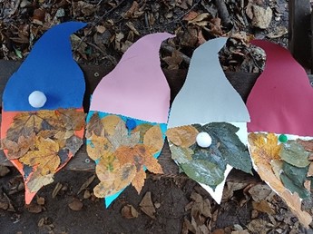 Bei den Waldhörnchen war es sehr beliebt zu werken und zu basteln. Beispielweise sind aus einem Stück Rinde, einem Stock und einem Blatt lauter Boote entstanden. Aus den zuvor gesammelten und gepressten Blättern sind bunte Blätterwichtel geworden.